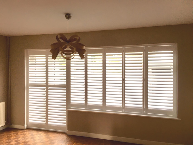 We designed shutters for some great bay window sash windows and then also for the door area to the courtyard. All shutters were made in full height style with 63mm louvres, hidden tilt rod systems and finished with white paint.
