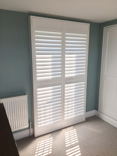 This month we were in Chelsea to install these wonderful shutters for a clients home. We were working in the bedroom area, installing shutters to a pair of French doors which overlooked out onto the garden area. Our customer was keep to take advantage of the modern style of our shutters, as well as the benefits that come with them such as light control and privacy.